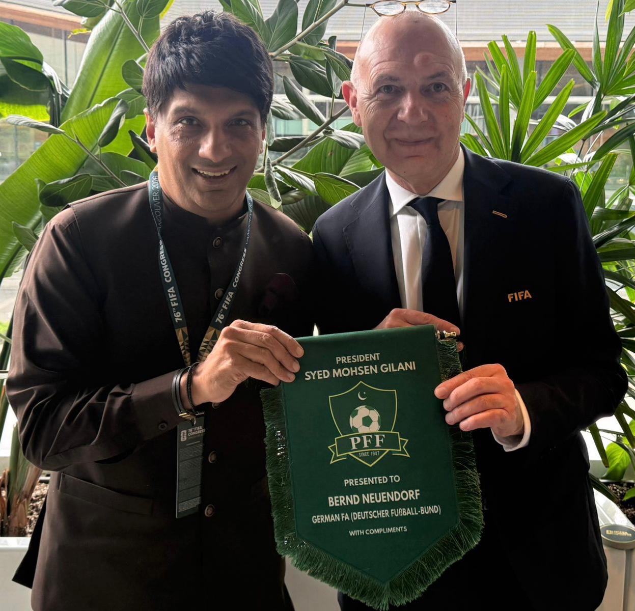 PFF president Mr Gilani, vice-president Hafiz Zakaullah and Chief Operating Officer Shahid Niaz Khokhar, who are in Canada for the 76th FIFA Congress on Thursday, met German Football Association (DFB) president Bernd Neuendorf, Canada Soccer president Peter Augroso, Chinese Football Federation (CFA) president Song Kai and Tajikistan Football Federation (TFF) vice-president Dzhalilov Iskandor.